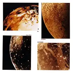 | 8 | Calisto | 1610 | Galileo Galilei | 4820,6 | 1,1×1023 | 1 882 700 | 16,690 | 0,187 | 0,0074 | Galileanos | ![]() |