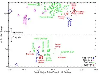 | 23 | S/2023 U 1 | 13.7 | ≈ 8 | ≈ 0.027 | 7 976 600 | −680,78 | 143.9 | 0.250 | 2023 | 2024 | Scott S. Sheppard et al. | |