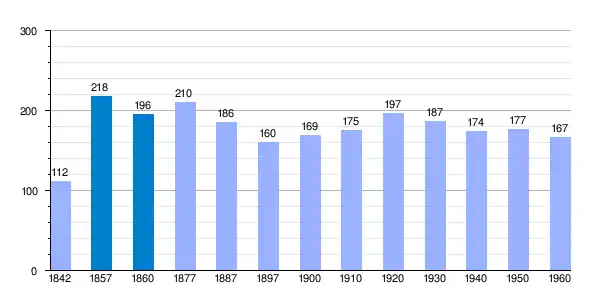 | Gráfica de evolución demográfica de Sauquillo de Boñices[6] entre 1842 y 1960 |
