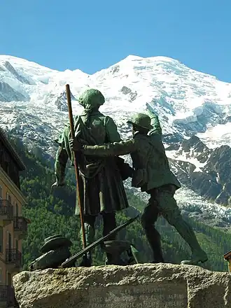 El 8 de agosto de 1786, Jacques Balmat y el doctor Michel Paccard pasando por los Grands Mulets llegan al fin a la cima. El 3 de agosto de 1787, acompañado por su mayordomo y dieciocho guías, Saussure es conducido a su vez hasta la cima, donde ordena instalar una tienda de campaña antes de proceder al cálculo de la altitud.[7]