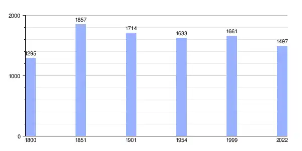 | Gráfica de evolución demográfica de Sauzé-Vaussais entre 1800 y 2022 |