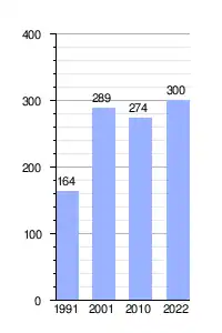 Según el censo 2022 se conoció una población dentro del municipio de 300 habitantes y 133 viviendas.[2]Además, el censo dio a conocer datos de su composición poblacional (23 hombres 17 mujeres), población urbana sin población rural dispersa o localidades dispersas en el municipio (40) densidad y área urbana.[3]