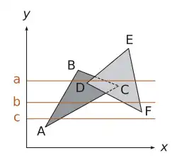 - Organizar aristas activas por su coordenada X actual.
