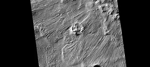 La densidad de cráteres de impacto suele permitir determinar las edades de las superficies de Marte y de otros cuerpos del sistema solar.[5] Las superficies más antiguas suelen tener mayor presencia de cráteres, y sus formas pueden revelar la presencia de hielo en el terreno.