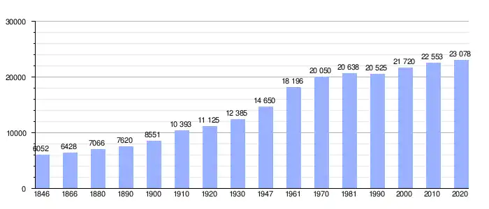 Todos los datos históricos relativos al actual municipio, el siguiente gráfico refleja su evolución demográfica, incluyendo municipios después de efectuada la fusión el 1 de enero de 1977.