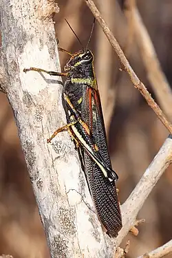 La Langosta grande pintada[1] (Schistocerca melanocera) es endémica de las Islas Galápagos de Ecuador, con excepción de la Isla Española. Las langostas forman una gran parte de la dieta del halcón de Galápagos y las lagartijas de lava. Puede ser de hasta 8 cm de largo.[1]