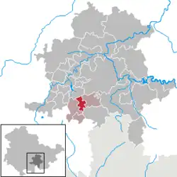 Se encuentra ubicado al sur de la ciudad de Weimar, y a poca distancia al norte de la frontera con el estado de Baviera.