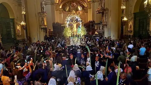 Para el Domingo de Ramos de manera extraordinaria y por disposición del arzobispado de Lima el Señor del Santuario de Santa Catalina acompañado por Nuestra Señora de las Angustias es trasladado en procesión desde el Monasterio de Santa Catalina hacia la Basílica Catedral de Lima el Sábado de Pasión para presidir la Misa de Domingo de Ramos acto con el que se da inicio a la Semana Santa de Lima.