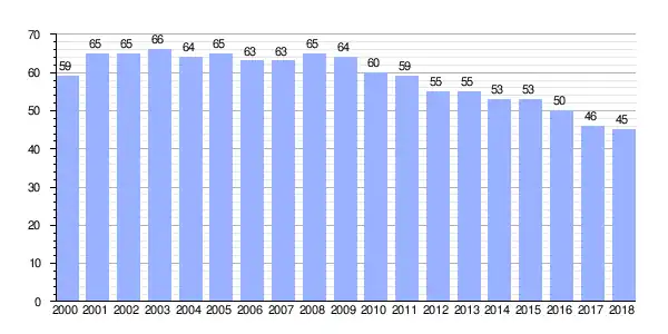 | Gráfica de evolución demográfica de Seares de Arriba entre 2000 y 2018 |