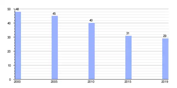 | Gráfica de evolución demográfica de Seavia (aldea) entre 2000 y 2019 |