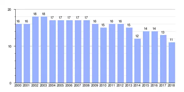 | Gráfica de evolución demográfica de Sebio entre 2000 y 2018 |