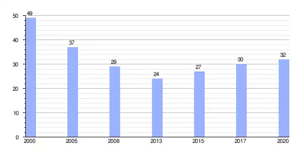 | Gráfica de evolución demográfica de Seceda (aldea) entre 2000 y 2020 |