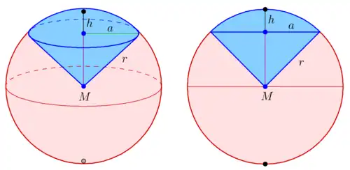 - ↑ Weisstein, Eric W. «Spherical sector». En Weisstein, Eric W, ed. MathWorld (en inglés). Wolfram Research.