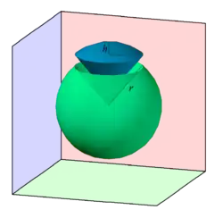 Si el radio de la esfera se denota por r y la altura del casquete por h, el volumen del sector esférico es