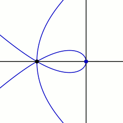 donde y . Se supone que es racional; de lo contrario, la curva no es algebraica y es densa en el plano. Sea el punto de intersección de las dos líneas y sea el ángulo en , entonces . Si es la distancia de a entonces, por el teorema de los senos,