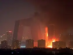 - ↑ Andrew Jacobs (10 de febrero de 2009). «Fire Ravages Renowned Building in Beijing». The New York Times. Consultado el 18 de octubre de 2010.