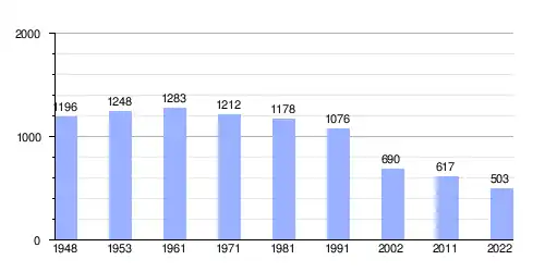Hasta 2022 la población era de 503 habitantes,[4] con una densidad de población de 51,49 habitantes por kilómetro cuadrado.[4]
