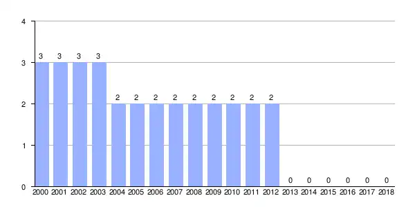 | Gráfica de evolución demográfica de Segade entre 2000 y 2018 |