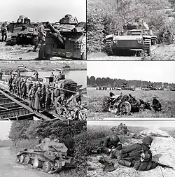 El periodo final de la guerra se caracterizó por las complejas operaciones necesarias para los desembarcos aliados en Europa (Sicilia, en julio de 1943; Anzio, en enero de 1944; Normandía, en junio de 1944) y por el hundimiento del frente oriental, en el que se libraron las operaciones con tanques más encarnizadas de la historia (batalla de Kursk, especialmente en Prójorovka, julio de 1943), mientras en el frente occidental los alemanes experimentaban armas tecnológicamente muy desarrolladas (misiles V-1 y V-2) y soportaban bombardeos destructivos sobre sus ciudades a una escala nunca antes vista (bombardeo de Dresde, en febrero de 1945) y la destrucción total de su capital (batalla de Berlín, entre abril y mayo de 1945).