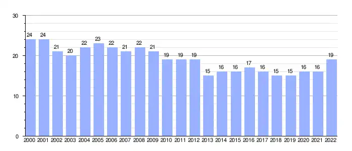 | Gráfica de evolución demográfica de Seijas entre 2000 y 2022 |