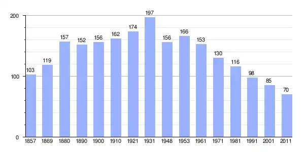| Gráfica de población de Sela Ravenska 1857-2011 |