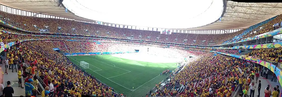 La selección colombiana ha participado en seis Copas Mundiales de Fútbol (1962, 1990, 1994, 1998, 2014 y 2018). En Brasil 2014 cosechó su mejor participación llegando a cuartos de final, quedando en la quinta posición del torneo.[6] Su mayor logro internacional es la Copa América 2001.[7] También obtuvo dos subcampeonatos, en 1975 y 2024. Llegaría a semifinales varias veces. El título del 2001 le permitió participar en la Copa FIFA Confederaciones 2003 donde alcanzaría las semifinales y posteriormente el cuarto lugar.[8] La 'Tricolor',[2] como es conocida, también logró destacadas participaciones internacionales, obteniendo de los Juegos Centroamericanos y del Caribe la medalla de oro en 1946, la medalla de bronce en 1938 y de los Juegos Bolivarianos la medalla de oro en 1951 y la de plata en 1961, 1973 y 1981.[n 1][9]