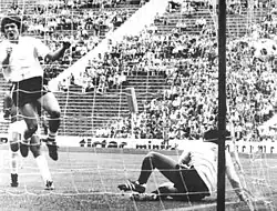 René Houseman celebrando el 2-0 parcial frente a Henri Françillon en la Copa Mundial de 1974.