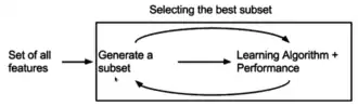 Un algoritmo de selección de características puede ser visto como la combinación de una técnica de búsqueda para proponer nuevos subconjuntos de características, junto con una evaluación mide cuál puntúa los diferentes subconjuntos de características. El algoritmo más sencillo prueba cada subconjunto posible de las características encontrando la que minimiza el índice de error, lo que es una búsqueda exhaustiva del espacio, y es computacionalmente intratable excepto para los conjuntos de característica más pequeños. La elección de la evaluación métrica influye fuertemente en el algoritmo, y son estas evaluaciones métricas las que distinguen entre las tres categorías principales de algoritmos de selección de características: envolturas (wrappers), filtros y métodos embebidos.[3]