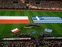 Εθνική (Ethnikí, Nacional) Η Γαλανόλευκη (I Galanólefki, La azul-blanco) Το Πειρατικό (To Peiratikó, El barco pirata)[n 1] | ||||