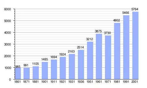| Gráfica de evolución demográfica de Sellia Marina entre 1861 y 2001 |