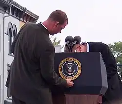 - el escudo de armas se incorpora a la insignia de Servicio Presidencial de EE. UU., entregada al personal militar;