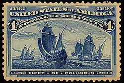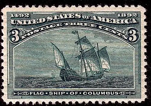 Se titula El barco abanderado de Colón y representa a la Santa María. Se ha considerado que está basado en un grabado español, pero la fuente es desconocida. El grabado del sello fue realizado por Robert Savage. Aunque se imprimieron más de 11 millones, no correspondía a ninguna tarifa postal estándar de 1893. En lugar de eso, se consideró un sello para combinar en envíos que tuvieran un precio mayor.[8]