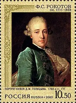 19.03 | Dos obras del pintor Fiodor Rokotov: 1) Retrato del príncipe D.M. Golitsyn ("Портрет князя Д.М. Голицына", 1760) |