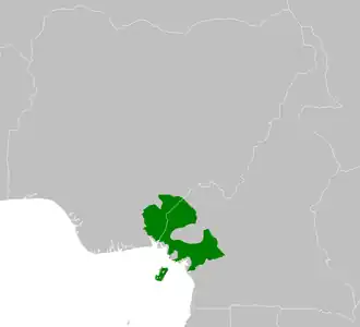 Es una ecorregión de selva lluviosa que, con una extensión de 52.200 kilómetros cuadrados, ocupa una franja de unos 300 kilómetros de ancho a lo largo de la costa atlántica entre el río Cross, en el sur de Nigeria, y el Sanaga, en el suroeste de Camerún, además de las tierras bajas de la isla de Bioko.