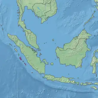 Las selvas tropicales de las Islas Mentawai son una ecorregión de bosque tropical húmedo de hoja ancha en Indonesia . Cubre las Islas Mentawai, un archipiélago en el Océano Índico frente a la costa occidental de Sumatra . Las islas han estado separadas de Sumatra desde mediados del Pleistoceno, y su aislamiento geográfico permitió la evolución de varias especies endémicas, entre las cuales hay 17 mamíferos. [1]