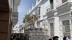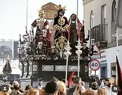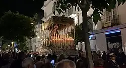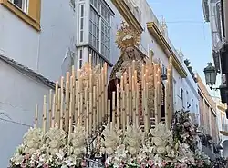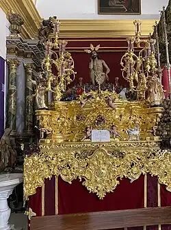 - Paso: Paso de madera de cedro barnizado en caoba, con aplicaciones y candelabros plateados. La hermandad está en proceso de realizar un nuevo paso.