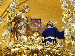 Representa a Jesús de Nazaret resucitado. La imagen de Nuestra Señora de la Alegría no procesiona, aunque lo hizo