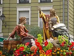 - Las escenas: suelen ser grupos escultóricos y son llevados en carroza rodada. Representan momentos concretos de la Pasión como la Oración del Huerto o la Verónica.