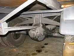 Ejes oscilantes en un Tatra T27. Nótese que el diferencial está fijado al chasis por lo que los semiejes oscilan cubiertos por las trompetas