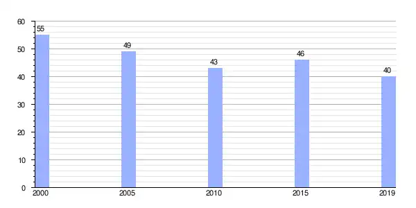 | Gráfica de evolución demográfica de Senande entre 2000 y 2019 |