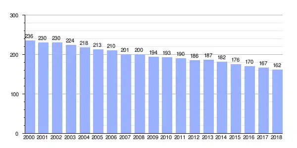 | Gráfica de evolución demográfica de Sendelle entre 2000 y 2018 |
