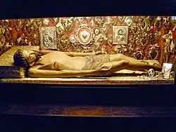 El Entierro de Cristo ha sido un tema popular en el arte, que se desarrolló en Europa occidental en el siglo X. Aparece en ciclos de la Vida de Cristo. Aparece en ciclos de la Vida de Cristo, donde sigue a la Deposición de Cristo o a la Lamentación sobre Cristo muerto. Desde el Renacimiento, a veces se ha combinado o confundido con alguna de ellas.[84]