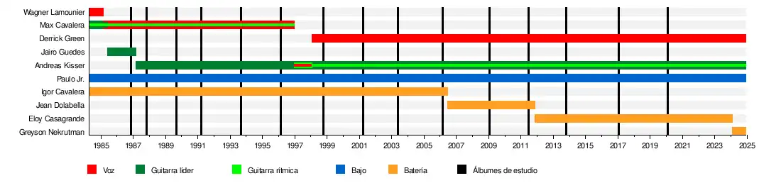 El fundador y principal compositor del conjunto, Max Cavalera, dejó la agrupación abruptamente en 1996 como resultado de desacuerdos personales y posteriormente fundó Soulfly.[1] Su hermano Igor hizo lo mismo en 2006 y ambos volvieron a unirse en el proyecto Cavalera Conspiracy.[8] La formación actual de Sepultura está integrada por el bajista Paulo Jr. —el único integrante original que continúa en la banda—,[9] el guitarrista Andreas Kisser, el vocalista estadounidense Derrick Green y el batería Greyson Nekrutman.[10] El grupo ha publicado quince álbumes de estudio que les ha permitido vender más de veinte millones de copias en todo el mundo hacia 2014.[3]
