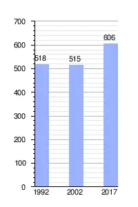 | Gráfica de evolución demográfica de Serón entre 1992 y 2017 |