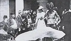 El estallido de la guerra hizo que se anulasen las elecciones en Serbia y se volviese a convocar a los diputados que habían cesado con la convocatoria de comicios.[20] El Parlamento se trasladó luego a Niš, junto con el Gobierno, que lo había hecho el 25 de julio.[20][21] El regente Alejandro se unió al Gobierno el 28, día en que el enemigo empezó a bombardear la capital.[21] Los serbios contaban con medio millón de combatientes a comienzos de septiembre.[20] En un gesto de caballerosidad, Francisco José permitió al jefe del Estado Mayor serbio, el general Radomir Putnik, que se hallaba en Budapest, que volviese a su país.[42] Las cañoneras austrohúngaras bombardearon Belgrado tras la declaración de guerra,[21] desatando el pánico entre la población.[43] Los serbios fijaron el cuartel general del Ejército en Kragujevac.[21]