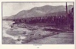 - ↑ Los exiliados partieron de los alrededores de Pristina y Prizren en dirección a San Juan de Medua, Escútari, Dirraquio y Valona.[65] El grueso de las muertes, debidas fundamentalmente al agotamiento y al hambre más que al hostigamiento albanés, se produjo en la marcha entre las últimas dos ciudades mencionadas.[59]