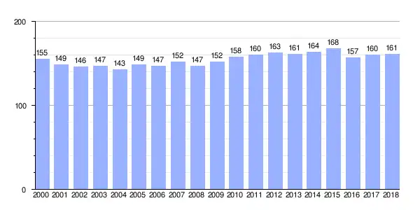 | Gráfica de evolución demográfica de Sergude entre 2000 y 2018 |