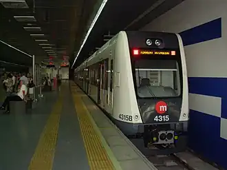 Unidad 4315 de FGV parada en la Estación de Marítim prestando servicio en la línea 7 de Metrovalencia | ||