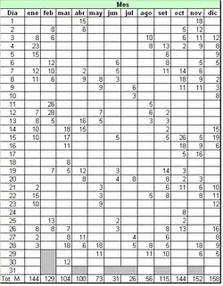 De la serie anterior, se pueden calcular los totales mensuales, para este caso son: