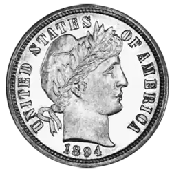 La mayor parte de fechas de la serie Barber son fáciles de identificar, pero la moneda de diez centavos de 1894 de la ceca de San Francisco (1894-S), con una acuñación de 24 unidades, es una verdadera rareza.[1]